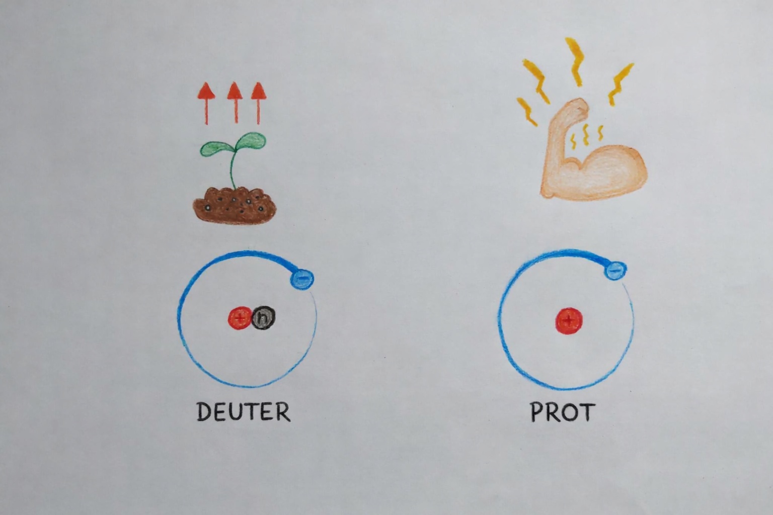 Deuter , stabilny izotop wodoru, jest składnikiem wody oraz związków organicznych. Występuje naturalnie w przyrodzie. Wykorzystywany jest m.in. w procesach wzrostu oraz do spowalniania niektórych reakcji chemicznych. Po sodzie jest drugim najczęściej występującym pierwiastkiem w ludzkim organizmie. Choć jego stężenie w organizmie jest znacznie niższe niż lekkiego wodoru, wiadomo, że komórki zawierające nadmiar deuteru wykazują szerokie spektrum zmian morfologicznych, biochemicznych i fizjologicznych, w tym zmiany w podstawowych procesach, takich jak podział komórkowy czy metabolizm energetyczny .