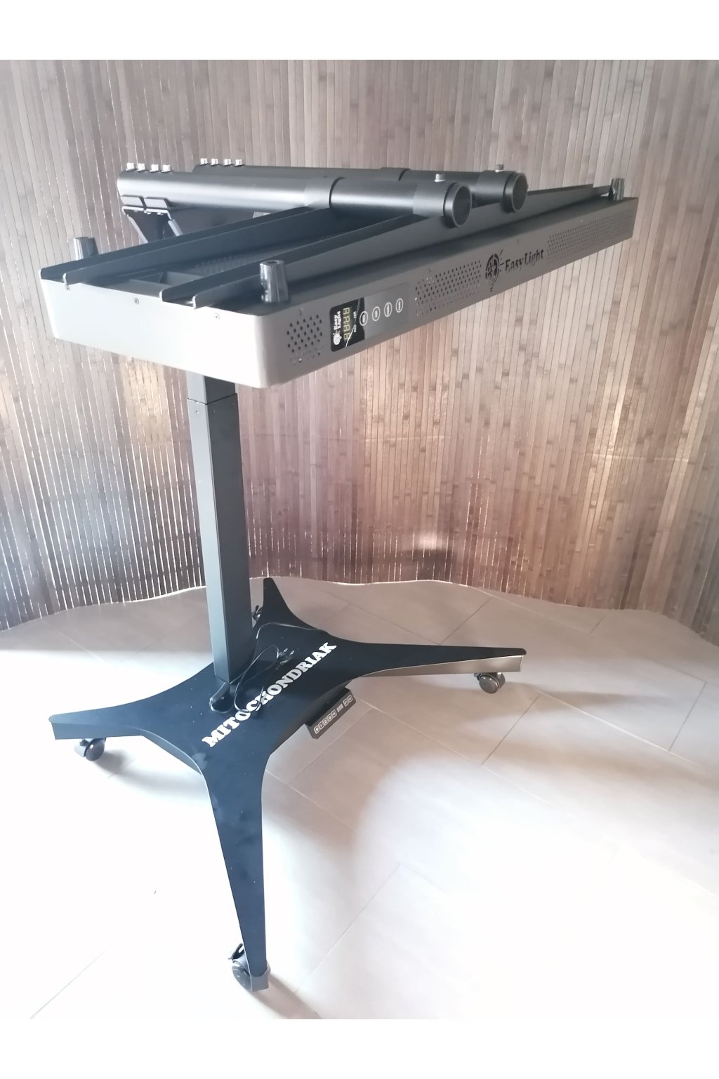 Nasz elektryczny stojak jest przeznaczony dla wszystkich infrapaneli Mitochondriak®, jest dzięki swojej praktyczności przeznaczony przede wszystkim dla centrów, klinik, czy dla fizjoterapeutów. Jest jednak używany także w domach, ponieważ jest bardzo praktyczny i łatwy w obsłudze. Jego dużą zaletą jest, że zawiera pilot zdalnego sterowania, za pomocą którego wystarczy stojak tylko zmontować, przymocować do niego panel, a następnie obsługę może przeprowadzić każdy za pomocą przełączania.