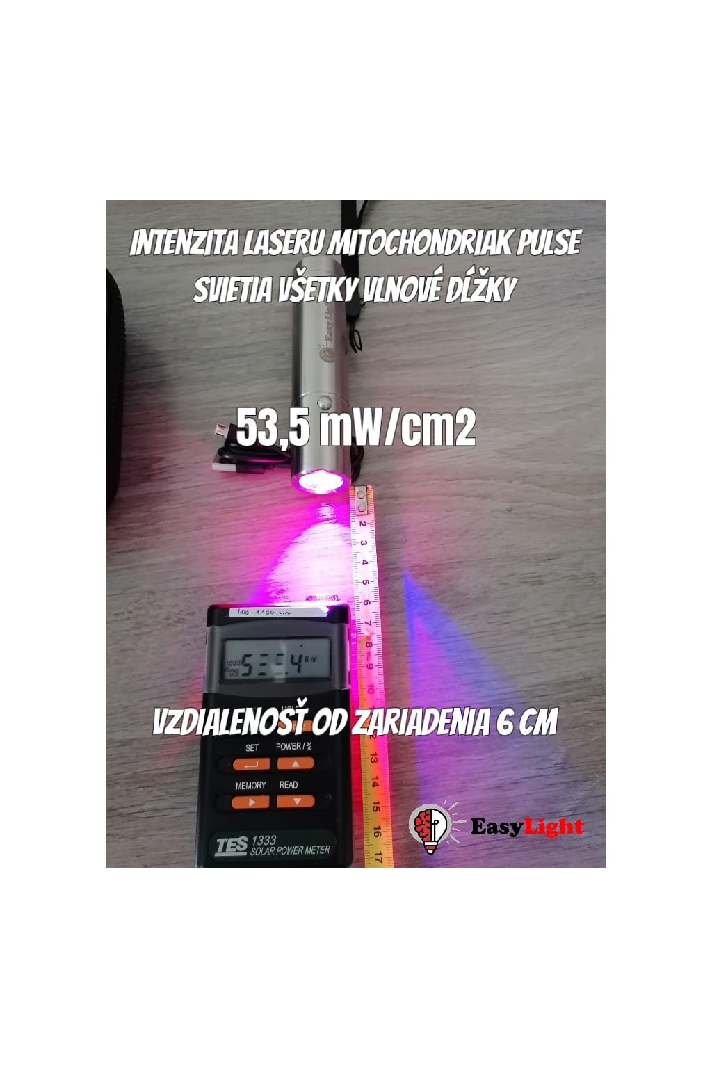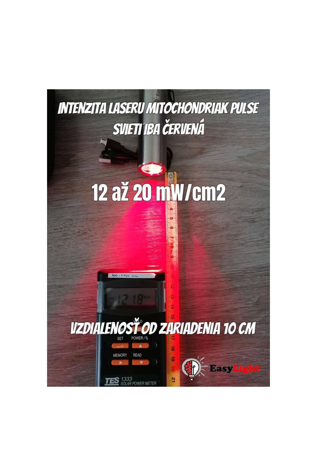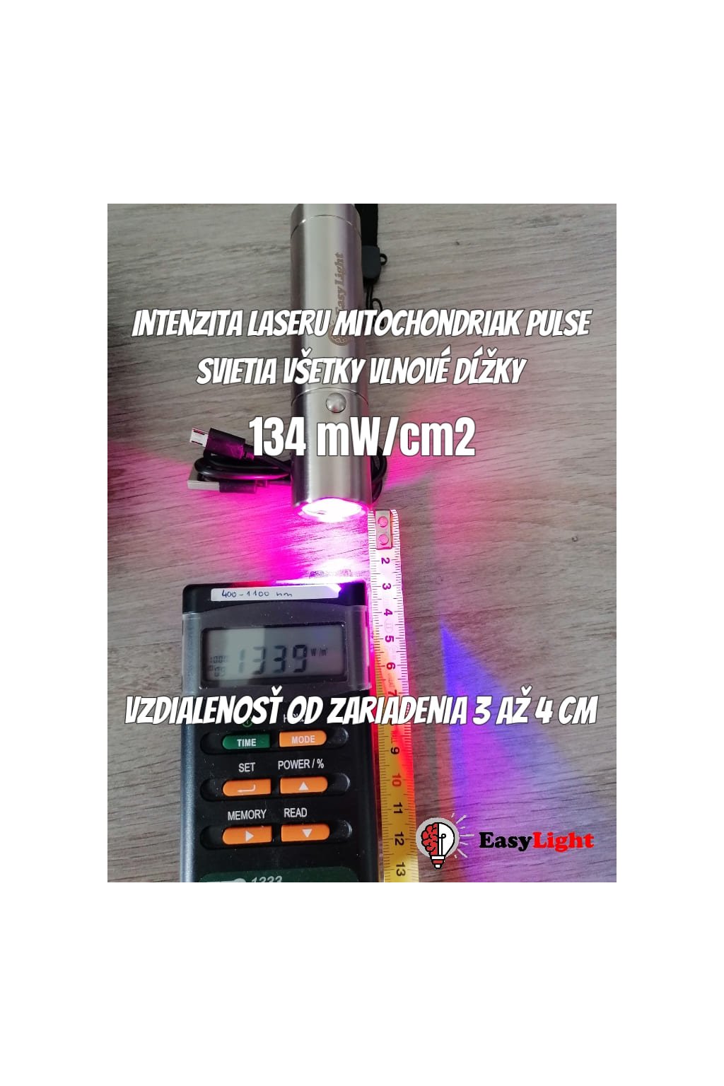 Intenzita (solarmeter): Viac ako 200 mW/cm2 (při 2cm vzdálenosti)