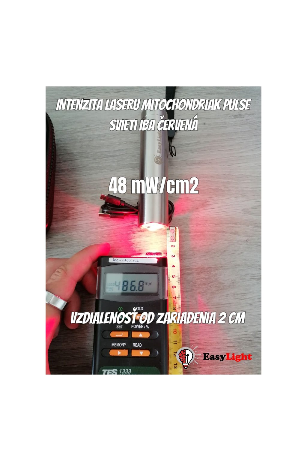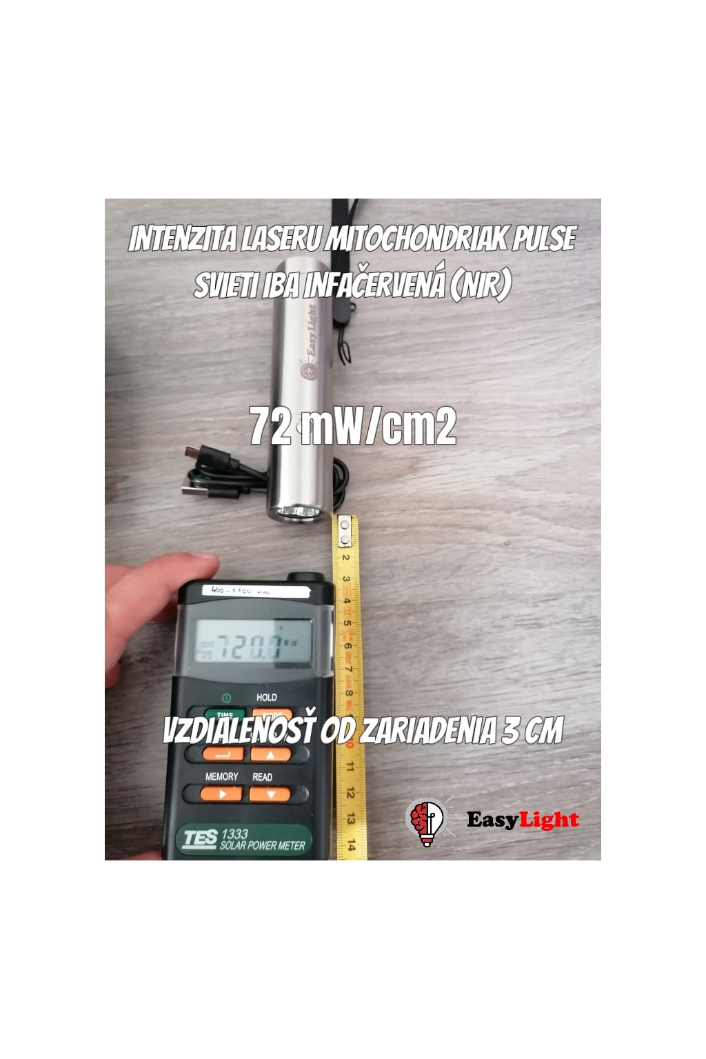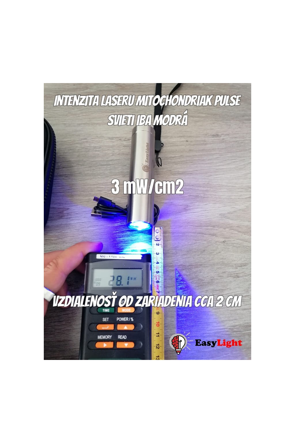 Intenzita (solarmeter): Viac ako 200 mW/cm2 (při 2cm vzdálenosti)