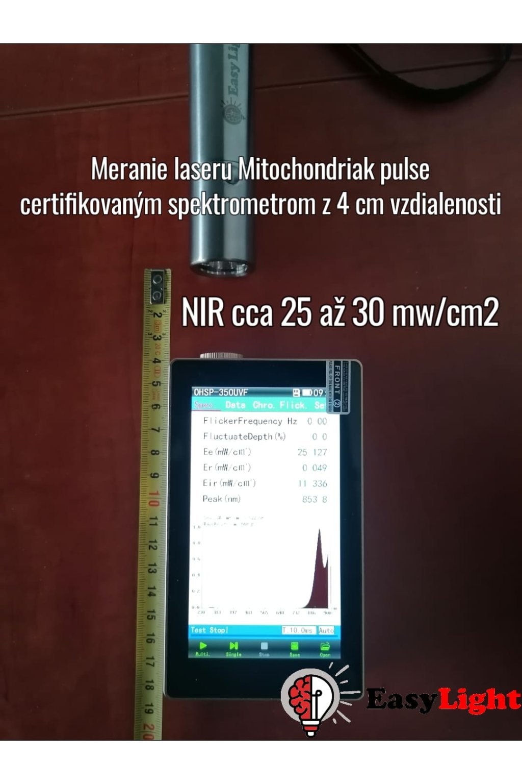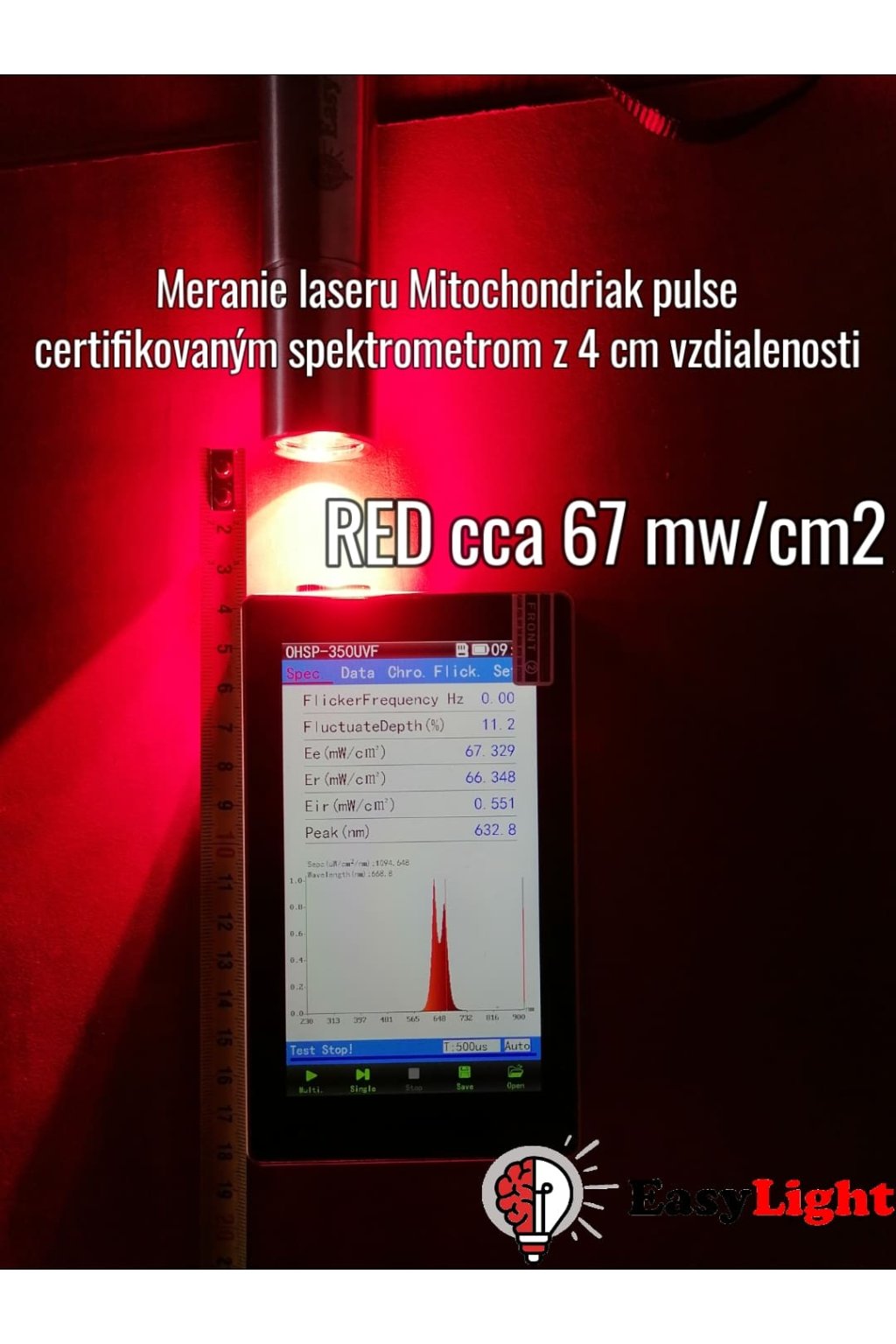 Intenzita (spektrometer): cca 230 mW/cm2