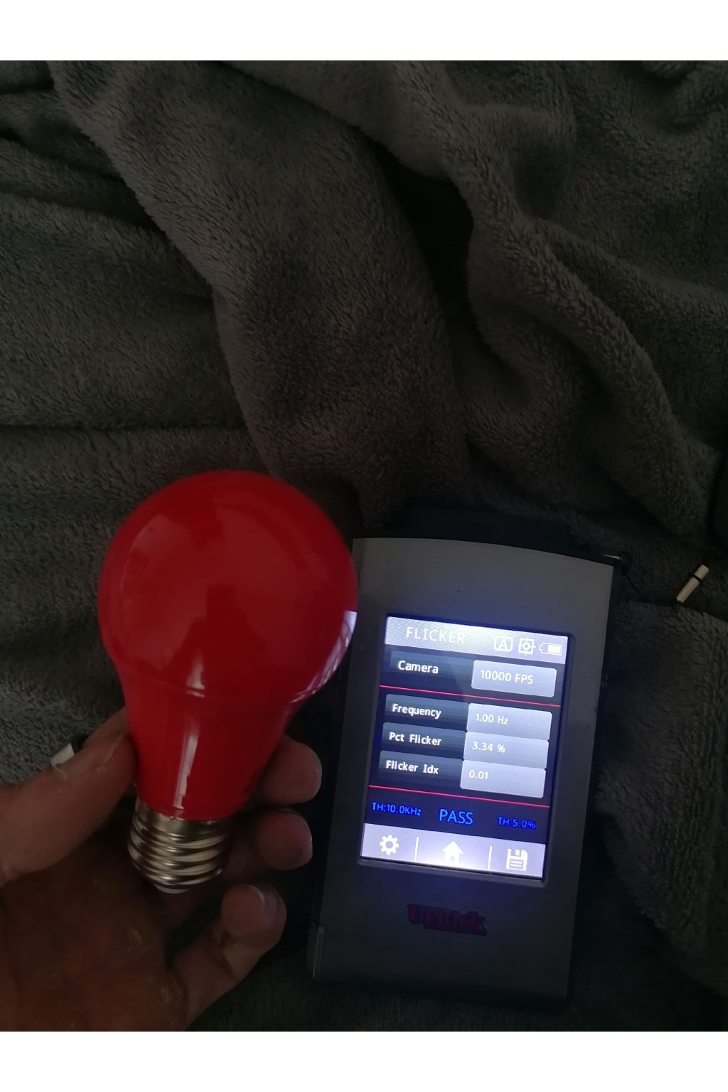 Czerwona żarówka E27 Mitochondriak® nie zawiera żadnego niebieskiego ani zielonego światła i jest bez migotania.