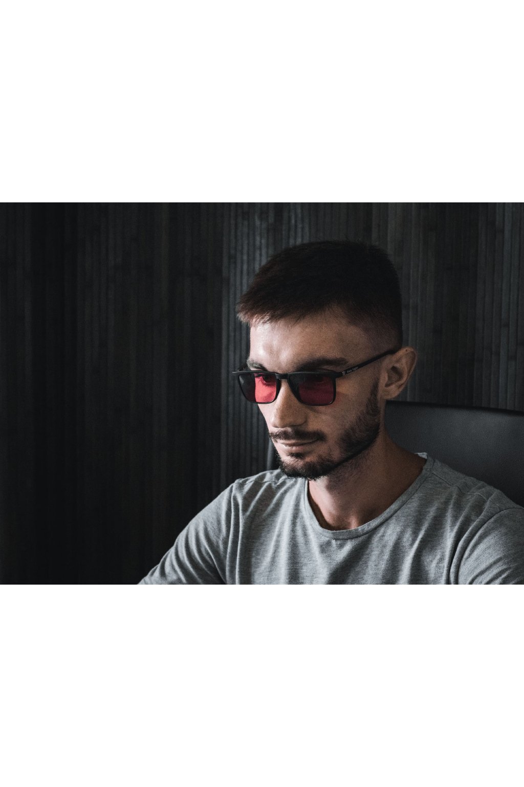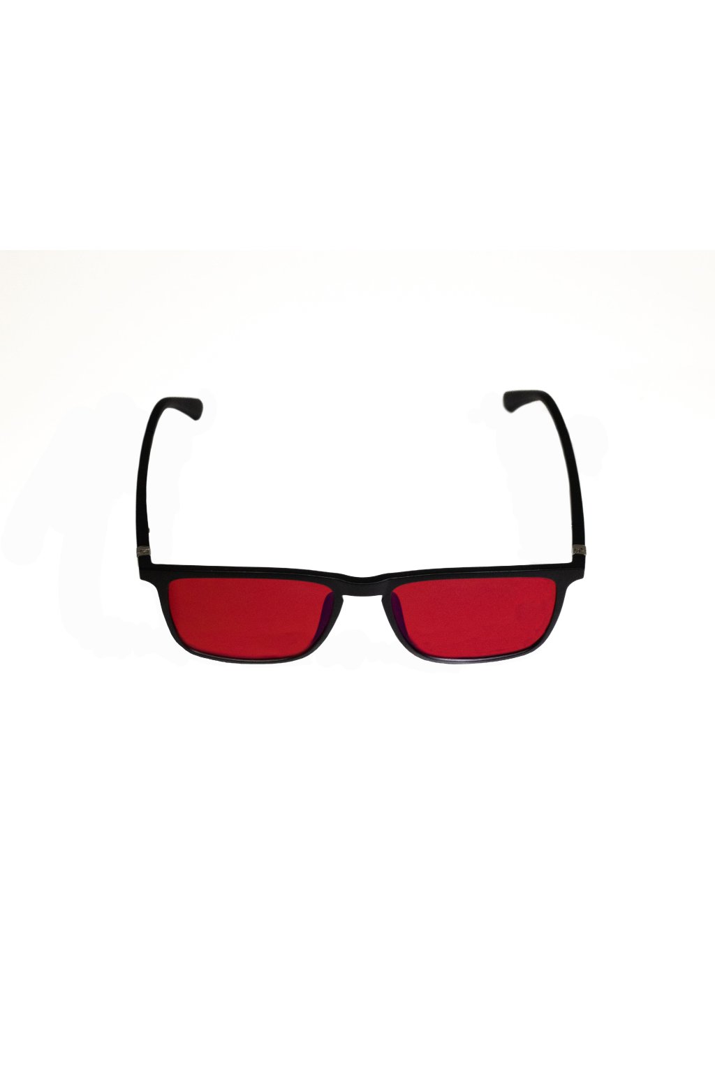 Eleganckie czerwone okulary Mitochondriak® ze 100% blokadą niebieskiego i zielonego światła