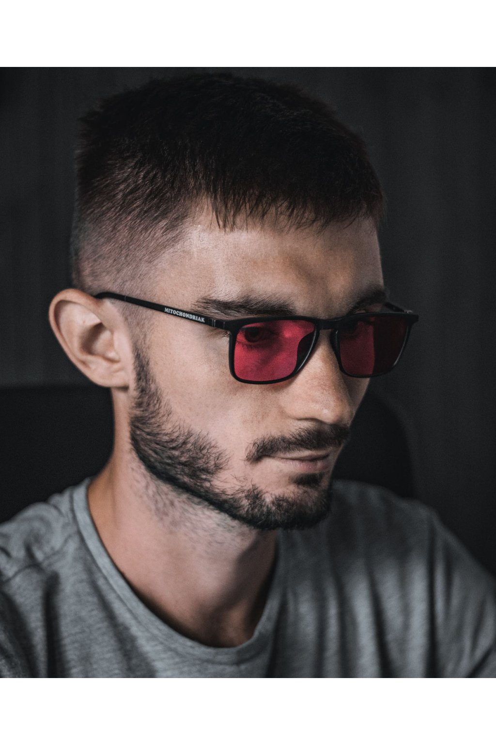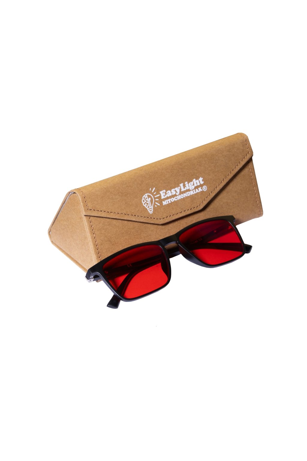 Nasze okulary Mitochondriak® zostały zaprojektowane tak, aby były jak najbardziej praktyczne i estetyczne (odpowiednie także na zewnątrz, do restauracji, sklepów i do noszenia w towarzystwie), a jednocześnie skuteczne. Posiadają ciemnoczerwone soczewki, które blokują niebieskie i zielone światło aż do 550 nm.