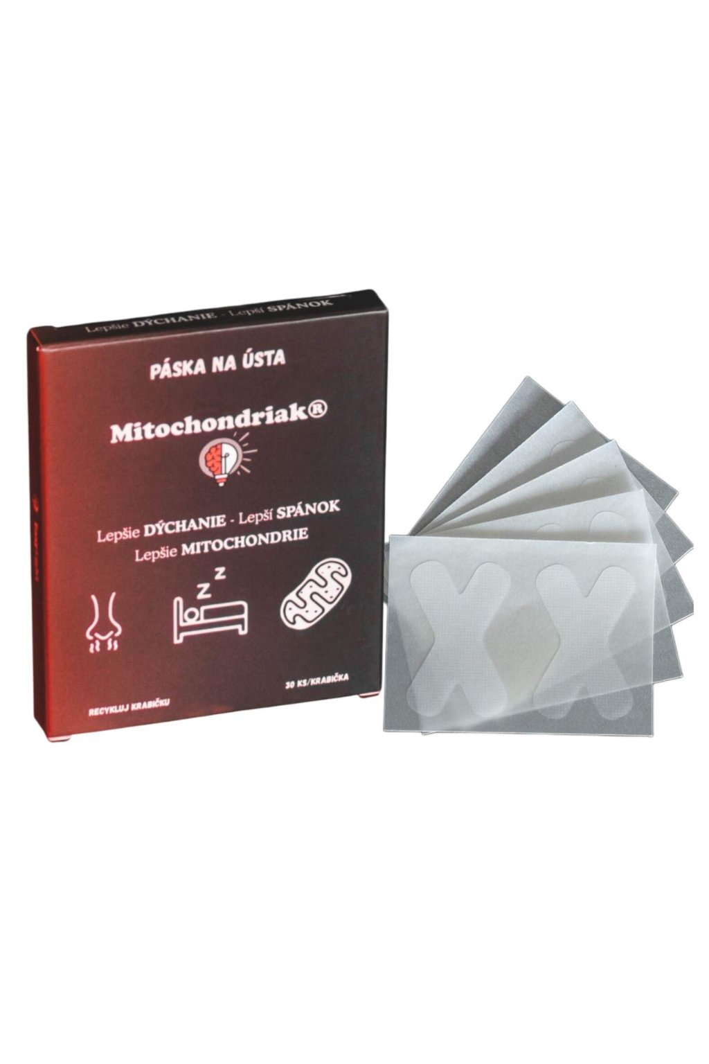 Taśmy na usta Mitochondriak® zapobiegają oddychaniu przez usta, redukują chrapanie, poranny nieświeży oddech oraz poprawiają dotlenienie organizmu i jakość snu.